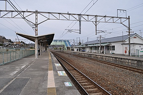 ホームは相対式2面2線。もとは2面3線あった跡が残っています。古い木造駅舎が健在で待合室はやや広め。駅舎脇には珍しく現役の池があって、小さな魚が泳いでいました。
