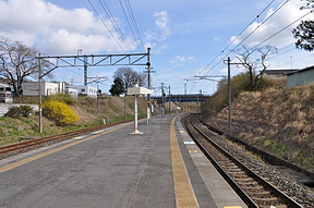 ホームは島式1面2線。橋上駅舎があり、東西それぞれに出入口があります。西口駅前にはロータリーがあり、店なども並んでいました。