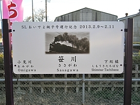 2013年2月9日〜11日に『SLおいでよ銚子号』という蒸気機関車が走るイベントが有り、その3日間限定建植型駅名標が立ちました。期間限定駅名標は佐原駅・笹川駅・銚子駅の3駅で、以降はレトロ調の駅名標に変更されたそうです。また、このイベント開催を機に駅舎もリニューアルしています。