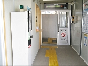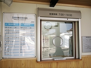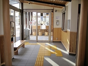 ホームは島式1面2線で、跨線橋で結ばれています。簡易委託駅。新駅舎工事着工により、2016年6月11日より仮駅舎が供用開始されました。工事は2016年10月中旬までの予定となっていました。