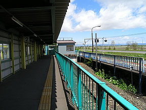 駅前に北海道医療大学があります。カラフルな駅待合室の隣に、ホームから大学へと直結する屋根付き通路が続いています。まさに北海道医療大学のための駅です。周辺の民家は非常に少なく、大学以外何もないという感じでした。