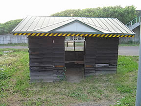 駅の頭上には国道40号線が走っています。待合室は出入口部分が道のため盛り上がっているのか、待合室が沈んでいるのか、とにかく屋根の角が危険きわまりないです。