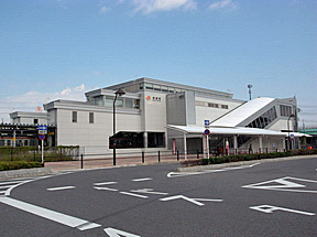 2面3線のホームをもつ橋上駅。北口駅前は跨線橋上と同じ高さにあります。