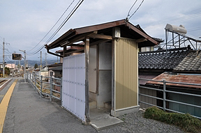 単式1面1線の無人駅。駅舎は無く、ホーム上に待合室があるのみ。ホームから直接国道側へ出る道はなく、東側の踏切か、西側の地下通路へ迂回しないと行けません。国道沿いには飲食店などもありたいへん賑やか。