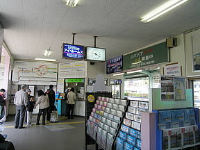 ホームは2面3線構造。駅舎は木造モルタル造。駅前広場にはバス・タクシー乗り場があり、店も多くあって賑やかな駅です。