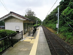 きれいなログハウス風の駅舎。ホームには古そうな待合室がありました。