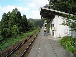単式1面1線の無人駅。駅回りには民家が無く、集落は駅をずっとしたにおり多所にあります。